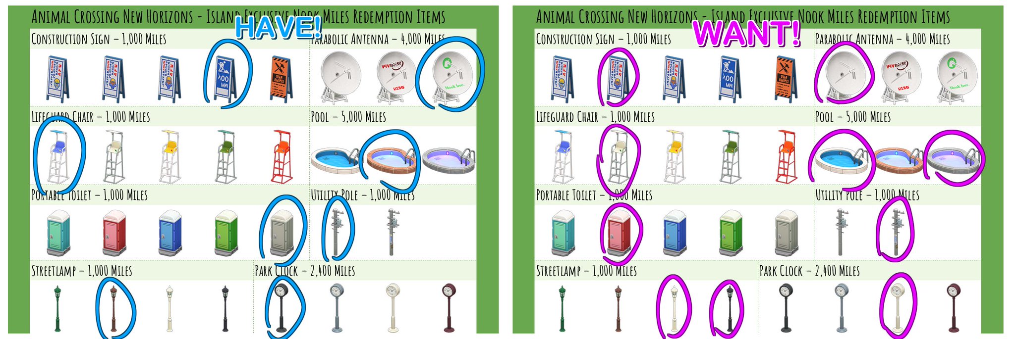 JankyBones ✪(Commissions OPEN!) on Twitter: "Animal Crossing New Horizons players! Here is my list of have/want! Blue = Have Purple = Want If I have anything you'd like and you have an